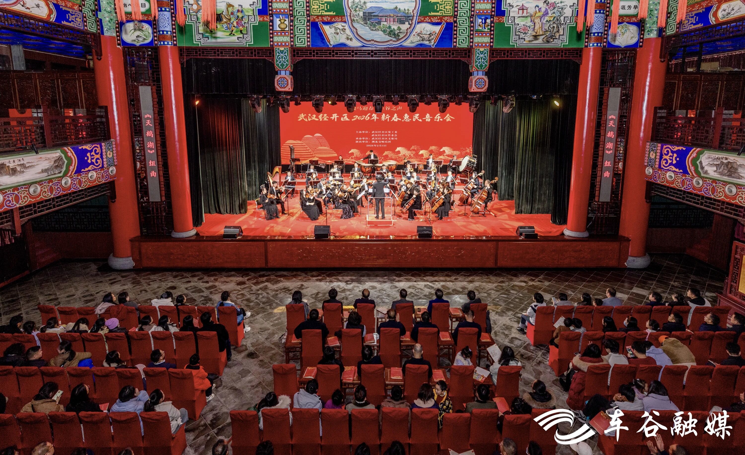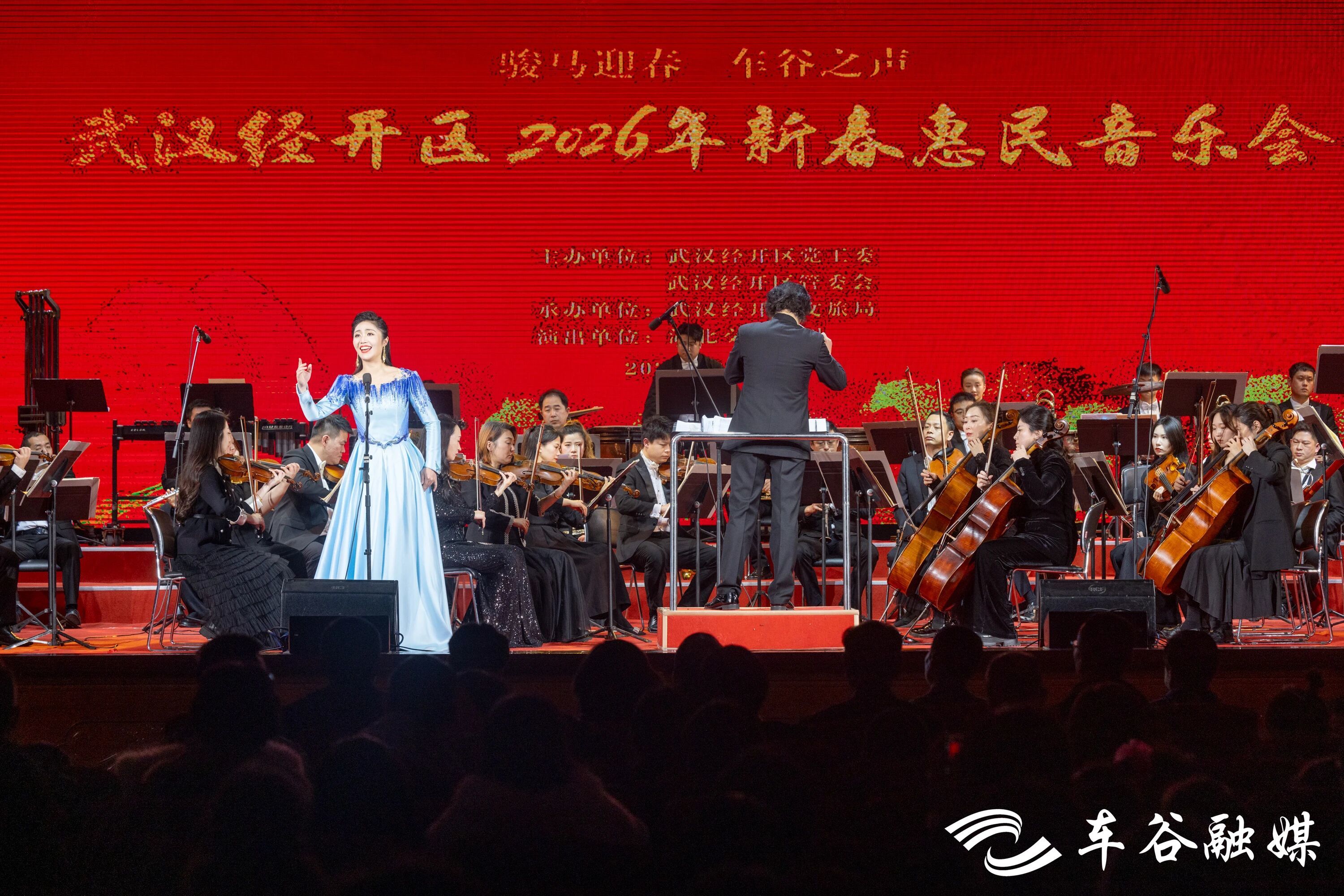 春启万物,福满车谷。2月4日晚,汤湖戏院灯火璀璨,“骏马迎春 车谷之声”武汉经开区2026年新春惠民音乐会在此举行。