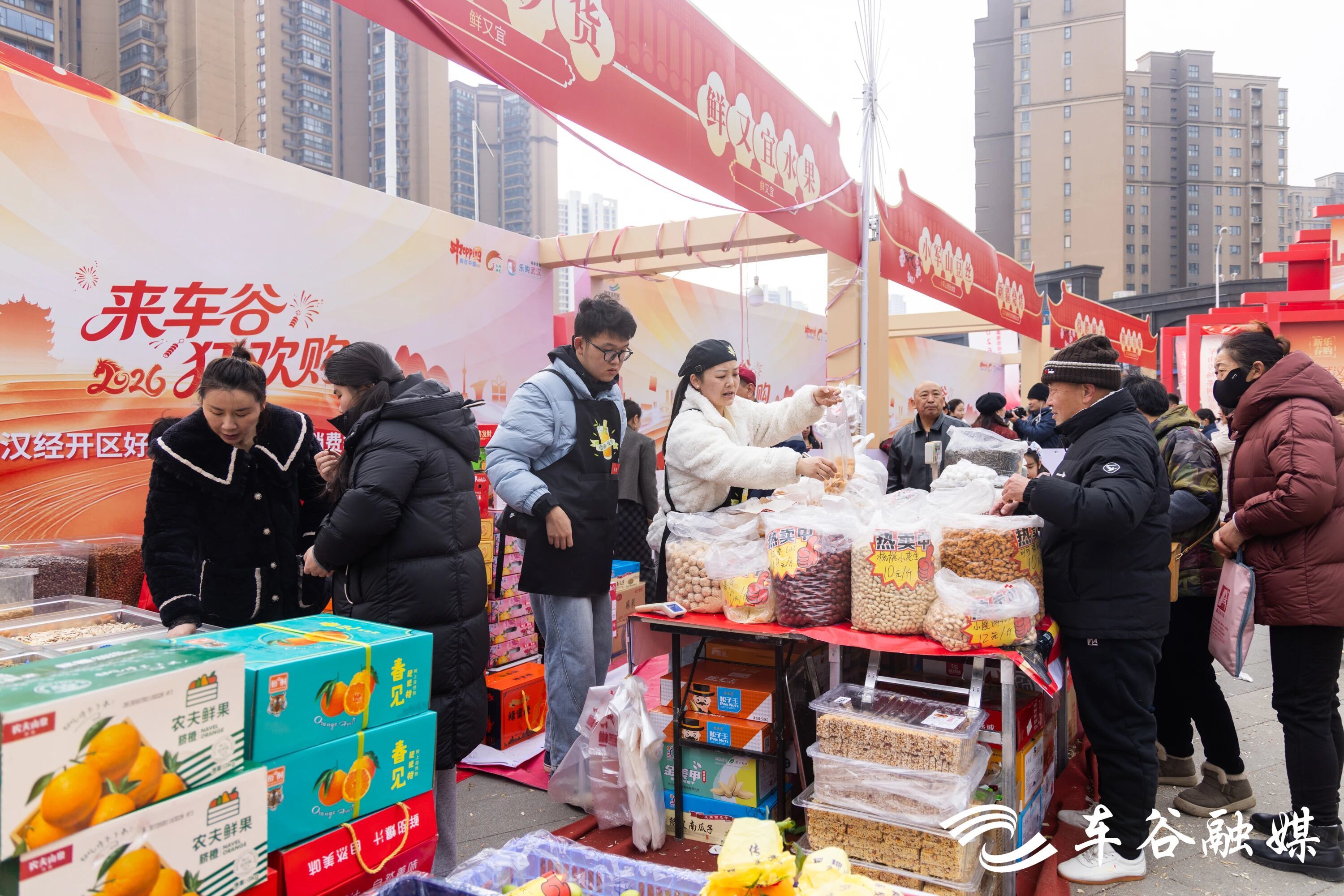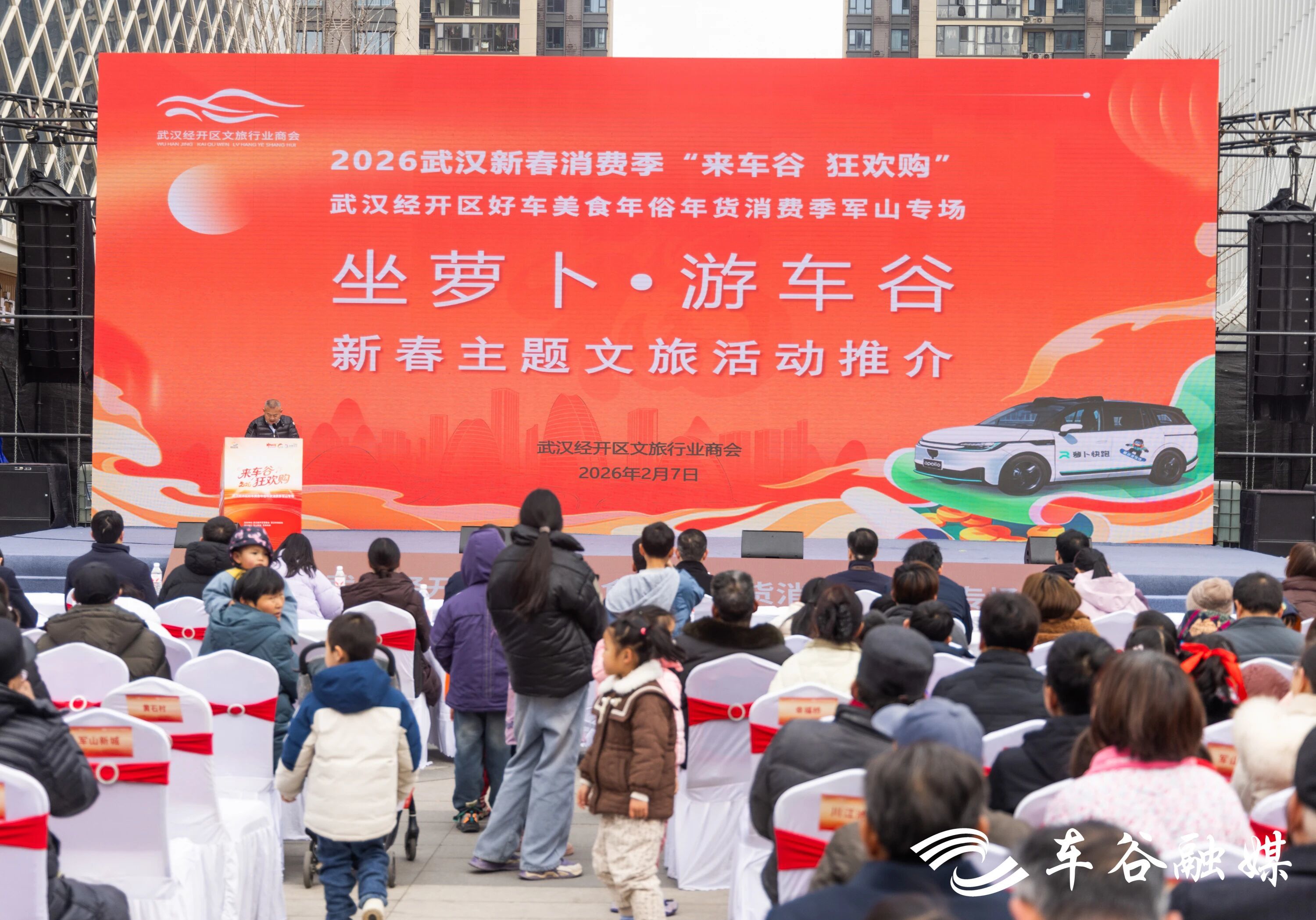 2月7日,“来车谷,狂欢购”2026武汉经开区好车美食年俗年货消费季军山专场在军山新城车都春台里商圈广场启动。“车谷造”好车与传统年货产品在这里汇聚,市民一站式体验“看车、赏非遗、囤年货、玩亲子、品美食”。