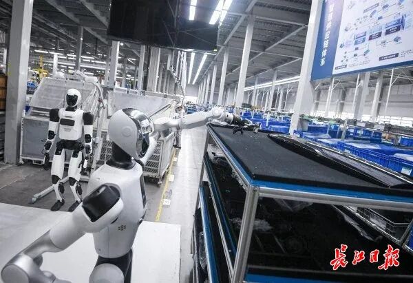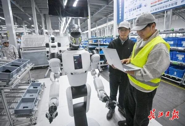 在武汉经开区东风猛士科技智慧园区总装车间,一位特殊的“新工友”正与工人并肩作业。4月16日,一台由猛士汽车与华中科技大学联合开发的人形机器人,灵活地从材料架上抓取物料,转身移动后精准放置在AGV小车的平台上,动作一气呵成。