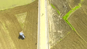 3月8日下午3点半,新洲区辛冲街周家墩农民王汉华和王兴承包的1300多亩农田里,95匹马力的雷沃拖拉机正拉着铁犁旋耕土地,农民王兴正在操作大疆重型农业无人机喷洒药水。这片高标准农田去年刚刚完成建设,修建了灌溉排水沟渠,硬化了道路,还对土壤进行了有机质提升。