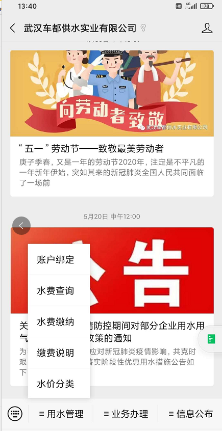 4.4、供水工程费须用申报单位的银行账户以转账支付。申报单位进账后,提供开票信息,领取发票。