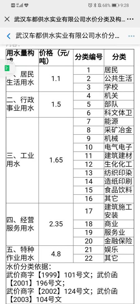 企业用户申请工业用水价格为1.65/吨,已在微信公众号及营业大厅进行公示。