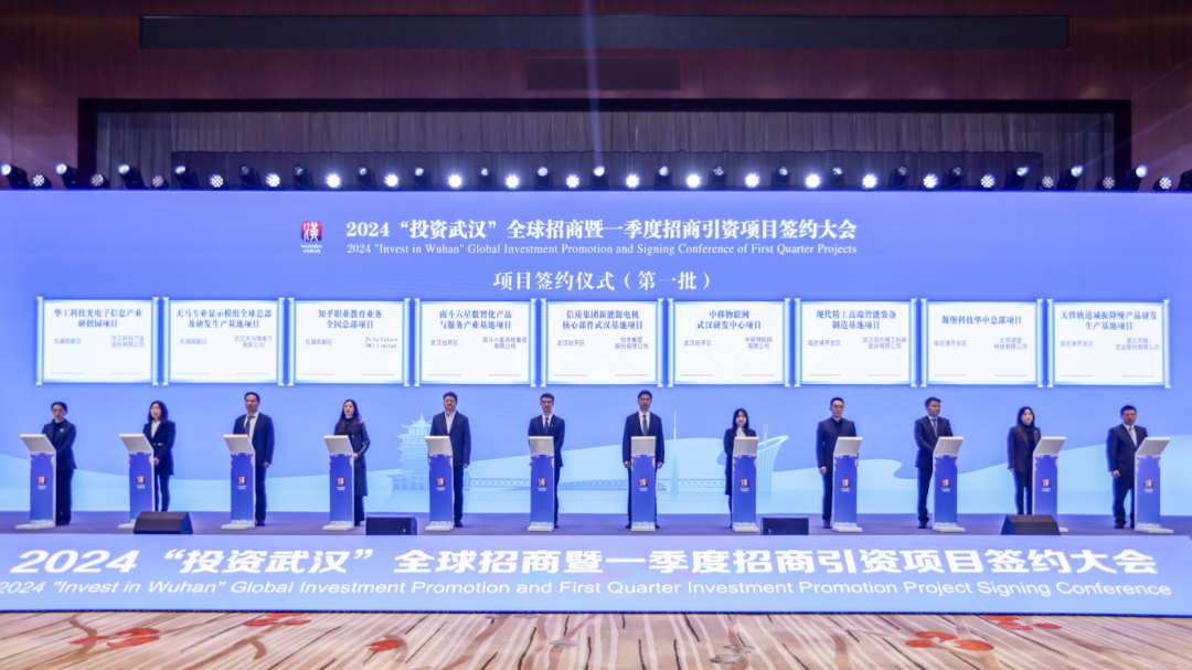 3月27日,2024“投资武汉”全球招商暨一季度招商引资项目签约大会。11个重大项目落户武汉经开区,签约总金额达297亿元,居全市首位。
