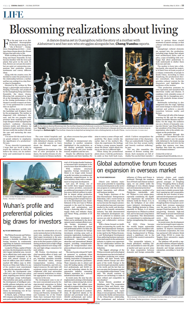 5月16日,是武汉经开区动工建设33周年。在此前夕,中国日报(CHINA DAILY)刊发报道,从支持外资企业创新发展、“车谷造”新能源汽车“出海”两个维度,向海外受众推介“中国车谷”。“武汉经开区”微信公众号将其译成中文并转载,以下是第一篇文章《武汉经开区释放外资吸引力》。