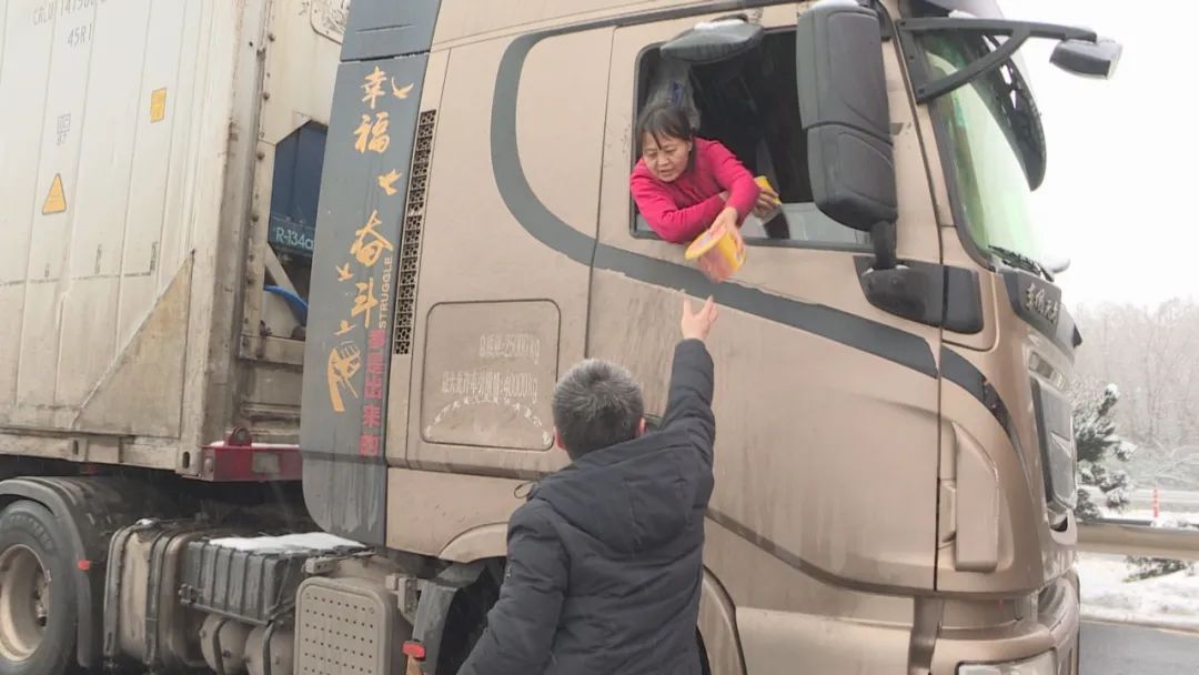 “感谢你们!提前祝你们新年快乐!”工作人员指挥滞留车辆分流,曹颜佳启动货车驶下高速公路,特意鸣笛致谢。