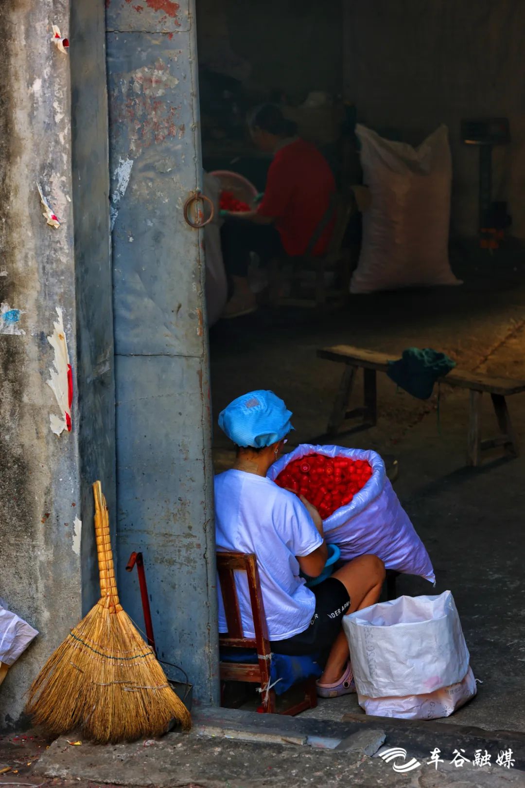 用床单做成的防晒檐,下面挂两个小瓶子防止吹落,风轻轻拂过,瓶子悠悠地晃动。一只晃悠悠的老藤椅,一把旧旧的蒲扇,一床斑驳的竹席,仿佛看见自己儿时在外婆家,吃着从井里刚捞出的“冰镇”西瓜,恣意玩耍,累了往竹席上一躺,然后被外婆手中一摇一摇的蒲扇送入梦乡。