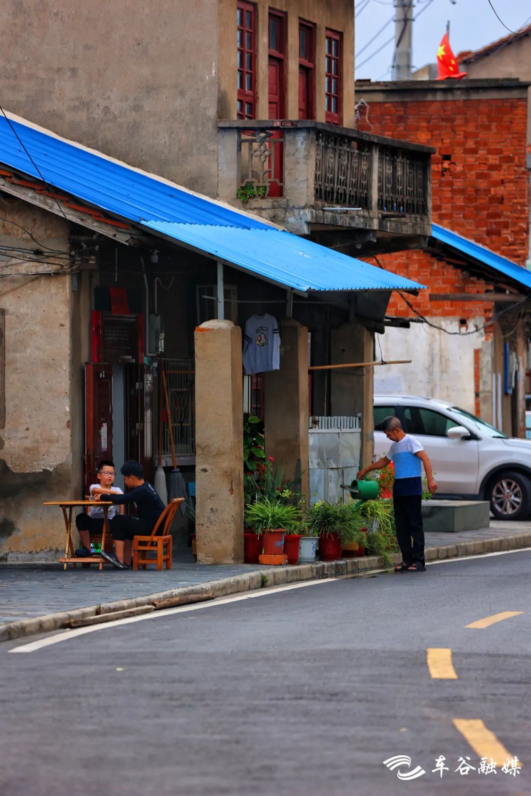 红砖翘檐,白墙青瓦