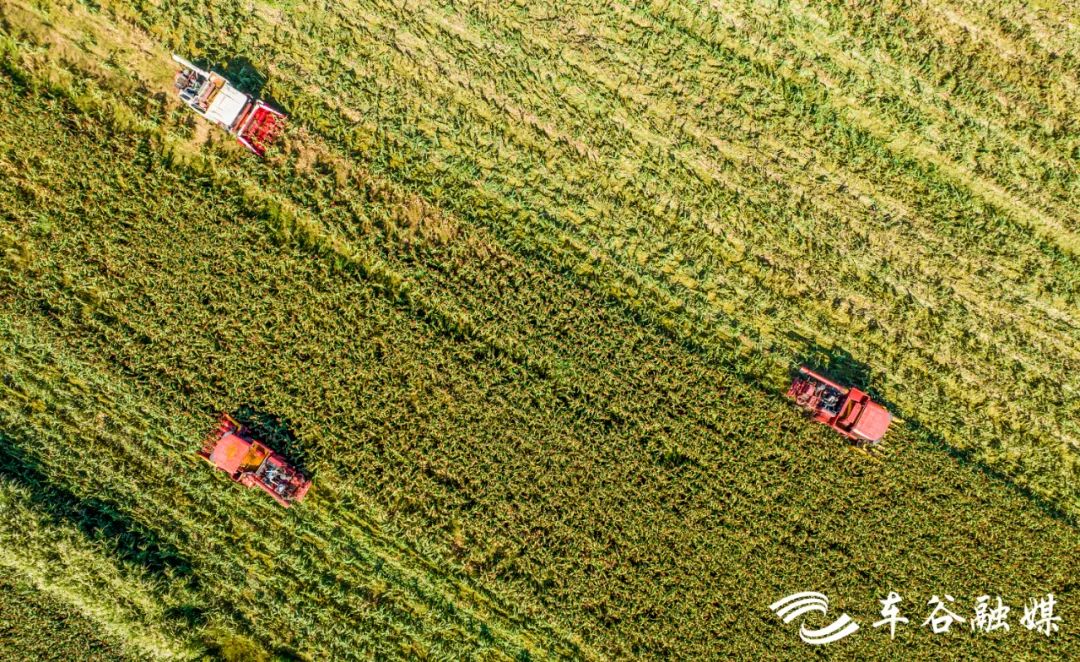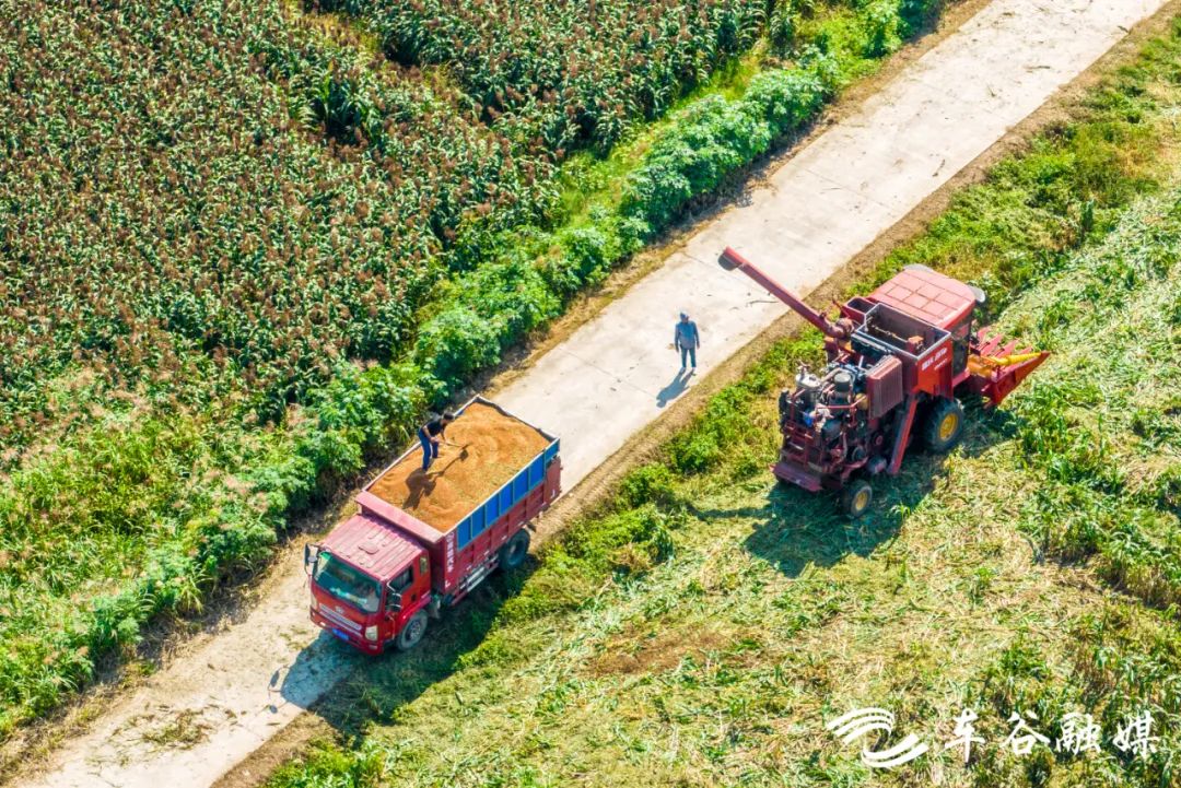 眼前的丰收场景,让这片高粱地的主人嘴角微扬。他说,这片高粱有2000亩,耕种管收全程机械化,亩产可达850斤。在不远处,他还有300亩大豆,也正在机械收割。