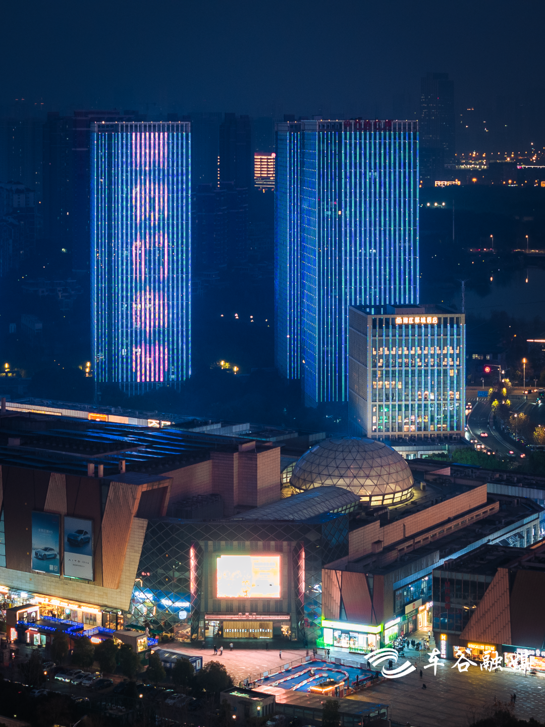 每当夜幕降临时,长达160米的网红天幕闪烁流光溢彩,璀璨夺目。浪漫的玫瑰花伞墙、独特的月亮打卡区,吸引着路人纷纷驻足。