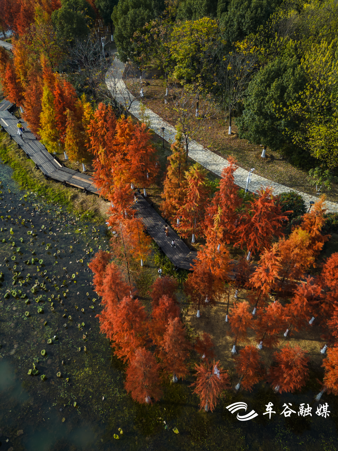 漫步于湖边栈道,成片的红杉和芦苇充满野趣 ,一路上都是惊喜和享受,宛如五彩缤纷的调色板,充满着诗情画意。