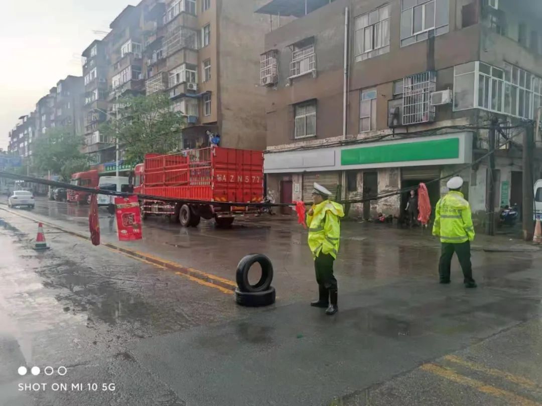 当日,大队共出动警力190余人次,警车21台次,汉警快骑30台次,在辖区东风大道太子湖路口、江城大道永旺路口、东风大道车北路口、兴城大道纱帽正街、汉南大道纱帽正街路口、东风高架全线等主要路口及易滞水路口路段增派警力,交通大队指挥室通过视频监控主动发现滞水点位9处和两处树木被大风吹倒,均已安排警力现场妥善处置。