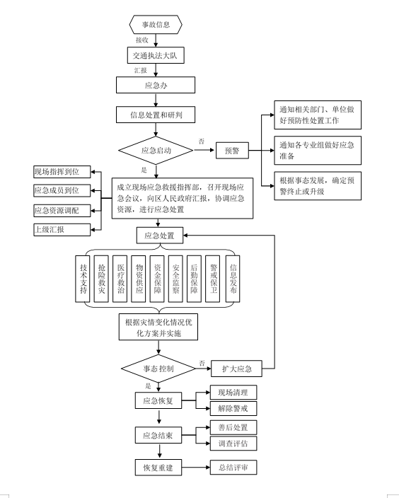 (4)快速反应,保障有力。事件发生后,快速处置,有效实施紧急救援和交通检查、防御措施,尽快恢复运输秩序,避免发生次生、衍生事件。