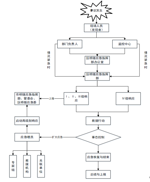 (3)现场指挥部:负责具体落实区桥隧应急指挥部要求,负责开展桥隧设施事故现场应急处置工作。由区城管执法局牵头,区应急管理局、区住建局、相关园区、车都公司、专家组(由区城管执法局等部门邀请相关行业领域专家组成,负责为设施事故处置提供专业意见)等相关部门配合。