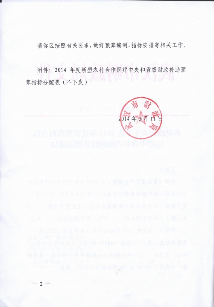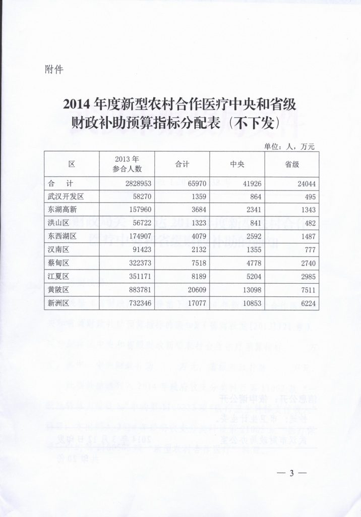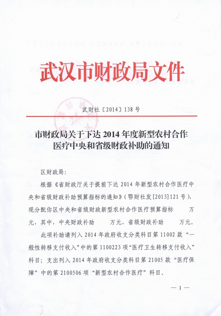 2014年新型农村合作医疗中央和省级财政补助-武财社[2014]138号