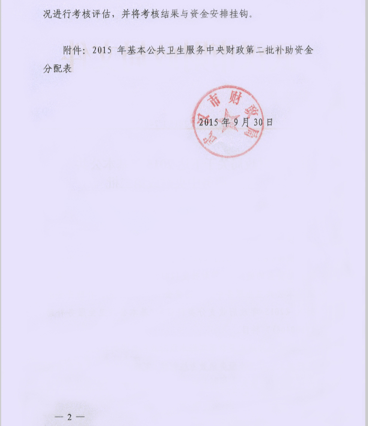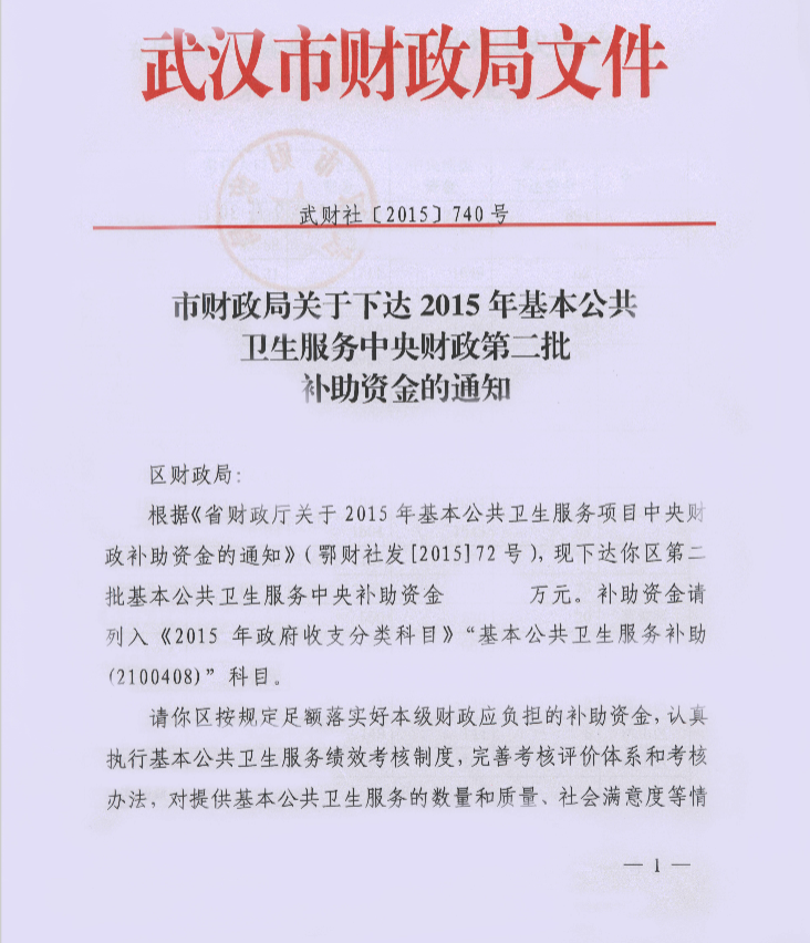 市财政局关于下达2015年基本公共卫生服务中央财政第二批补助资金的通知-武财社[2015]740号