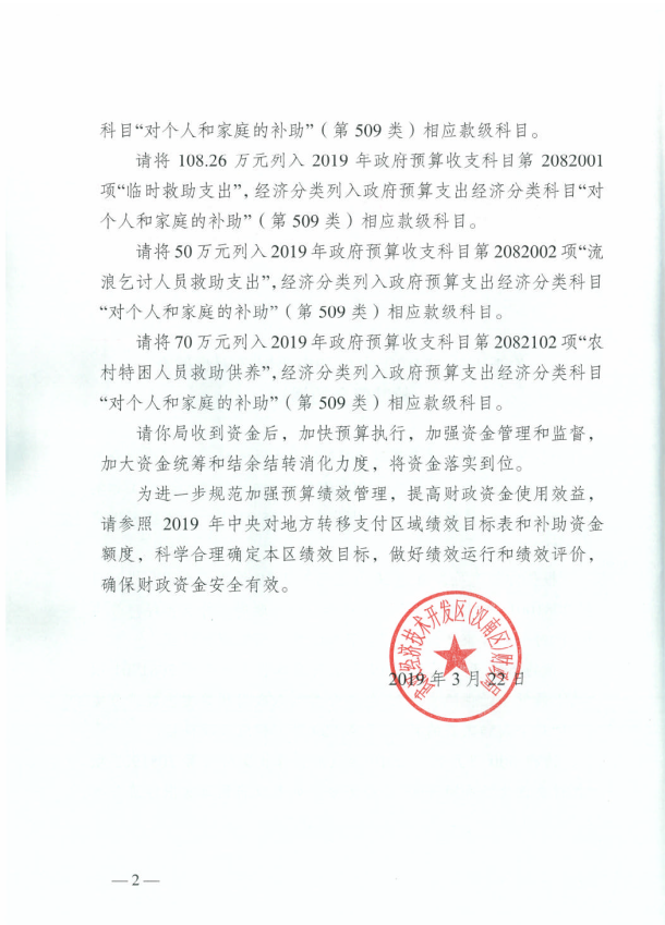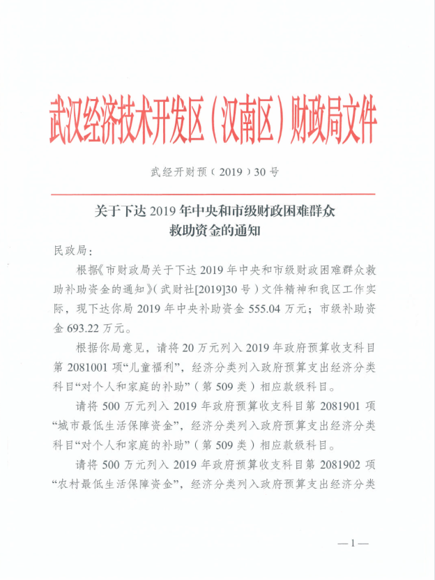 关于下达2019年中央和市级财政困难群众救助资金的通知