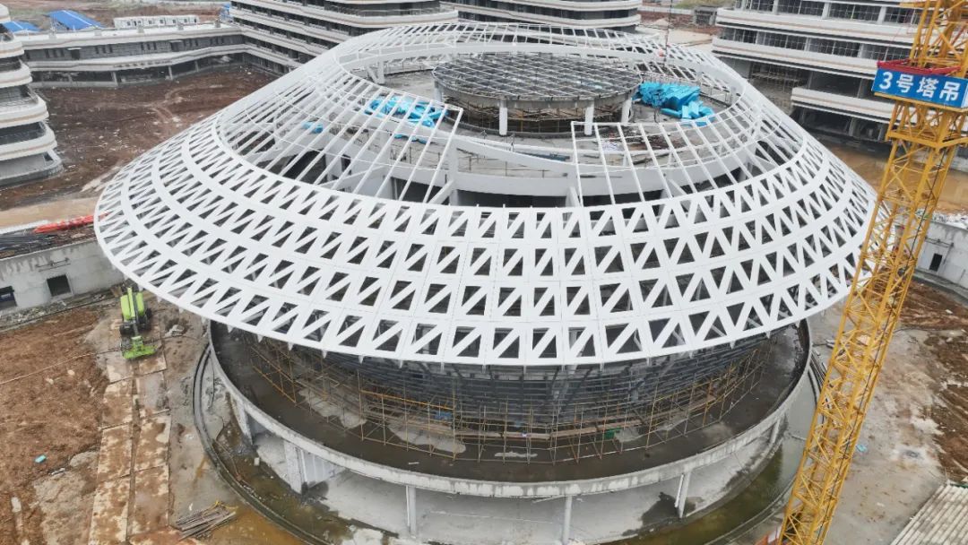 据介绍,这栋圆润建筑楼是该校区的计算机中心,建设难度较大,幕墙均由全双曲面玻璃和铝板拼合而成。“结构、幕墙设计都经过反复地优化,不断与设计单位、施工单位沟通,专项讨论会十余次,前后修改建设方案6次。”看着“拔地而起”的建设楼,程经理说,“接下来,我们将严格管控项目整体进度,确保武汉理工大学车谷校区如期开学。